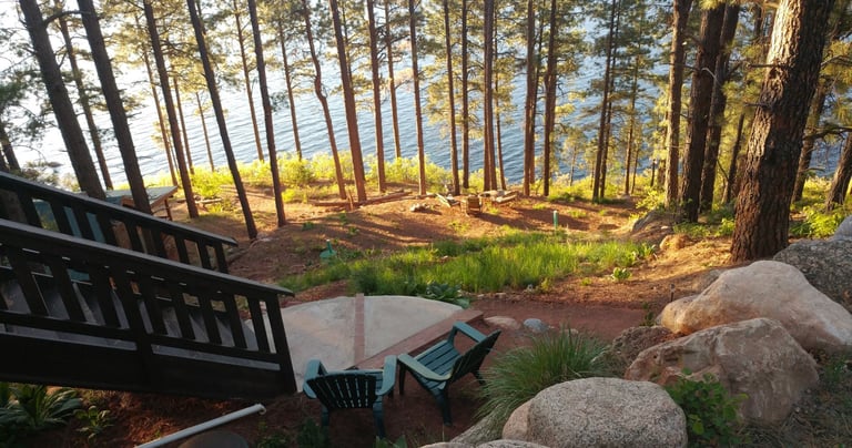 Shanty Chic 1Bedroom Cabin is a charming Lakefront wood cabin, designed with a delightful Colorado aesthetic! This cozy retreat offers awesome views and features a private deer trail that leads directly to the lake, allowing you to immerse yourself in nature. For outdoor fun, you'll have access to shared amenities including a rowboat, paddleboard, and fishing poles, perfect for a day of exploration on the water. After your adventures, enjoy a delicious meal cooked on the charcoal BBQ while soaking in the beautiful surroundings. This cabin is the perfect escape for couples or solo travelers seeking relaxation and adventure in a picturesque setting!