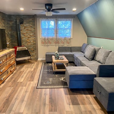 Two decks for stargazing every evening on both the first and second floors. The main floor has all the accommodations of a full cabin. The quaint kitchen is equipped with a five-burner stove and is stocked with just about everything you need- just ask! Take advantage of two complimentary kayaks, (to access kayaks, you will use a boat boarding ladder) life jackets, and oars for your lakefront experience. Explore the beautiful shoreline and walk down the private deer trail (which can be steep at points). with two kayaks, standard-size lifejackets, and a few fishing poles.